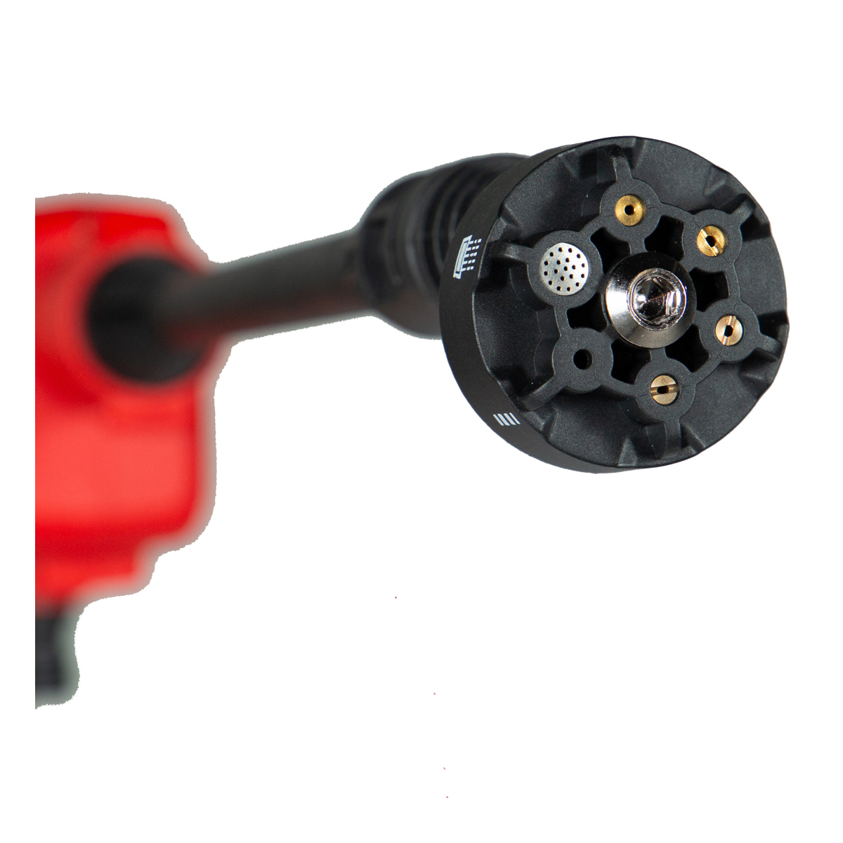 Equipada con boquilla 6 en 1manguera de aspiración de 5 metros con filtroportadetergente y acople rápido, permite ajustar el tipo de chorro según la superficie y necesidad, asegurando una limpieza profunda y eficiente. Su diseño ergonómico y peso liviano facilitan el transporte y la operación en cualquier lugar.